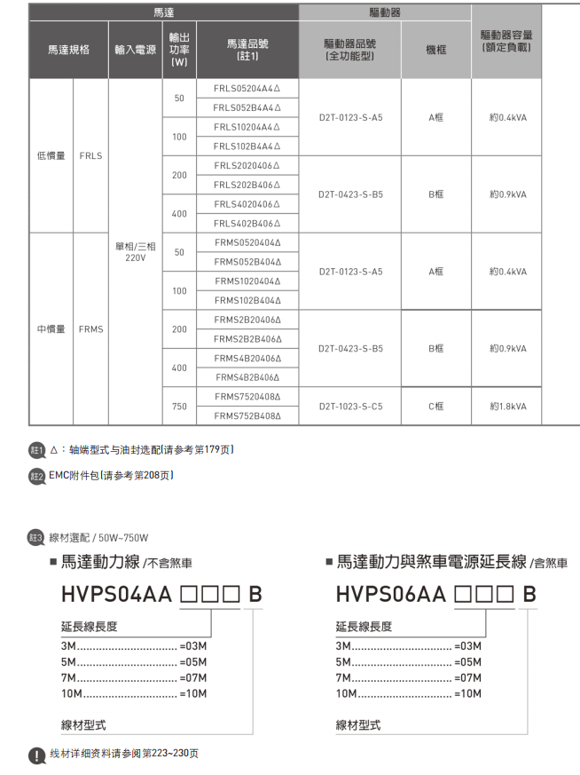 单轴机器人:介面搭配说明 50W~750W一17bit串列绝对式