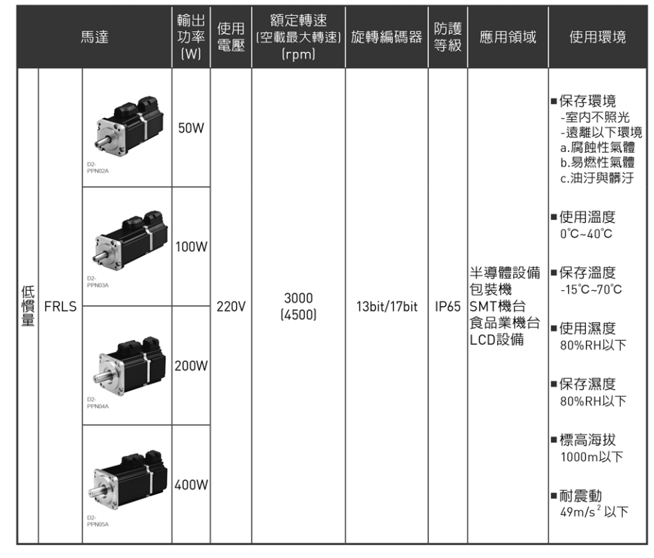 伺服电机:电机规格与使用环境