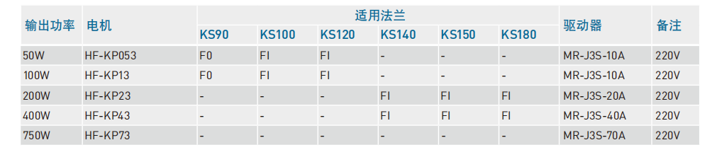 单轴机器人:常用电机参考(KS系列) 三菱 Mitsubishi 伺服电机