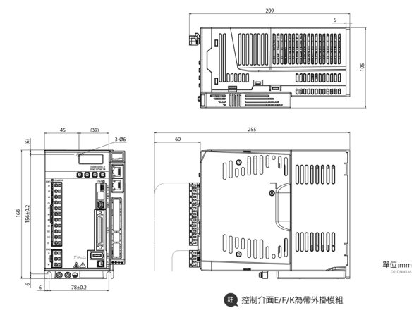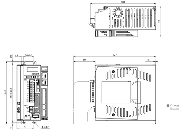 单轴机器人:驱动器尺寸 D框(D2x-20xx-E(注)-Dx)