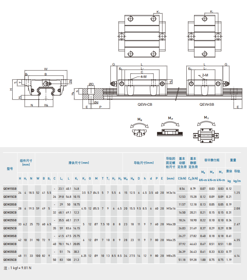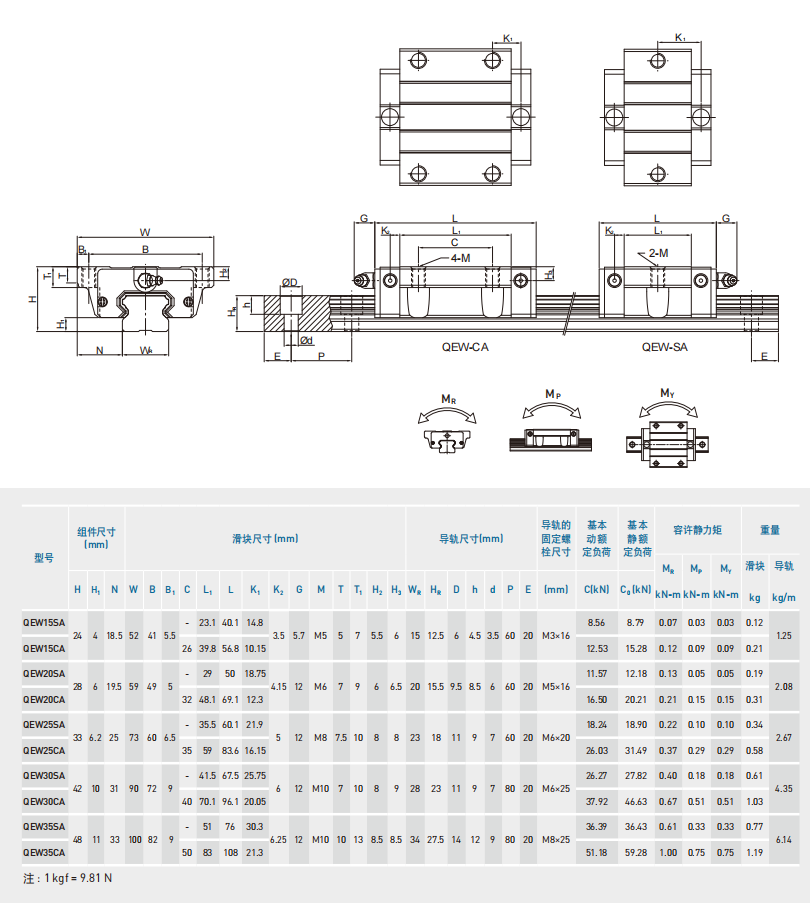 直线导轨:QE系列-静音式低组装型滚珠线性滑轨 QE系列产品规格说明