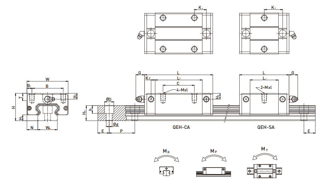 直线导轨:QE系列-静音式低组装型滚珠线性滑轨 QE系列直线导轨尺寸表
